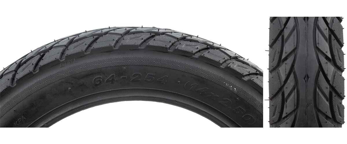 Smooth center with micro-knurled shoulders and wide angular siping provides a large contact patch for predictable handling.